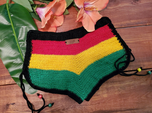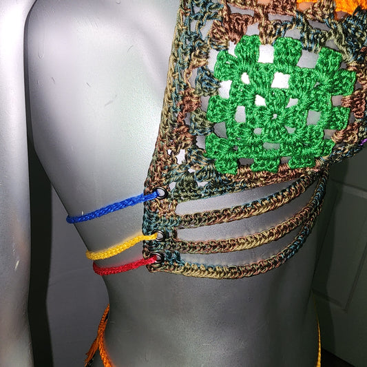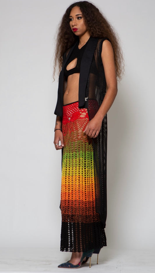 2pc Crochet "Rasta" Long Maxi Skirt w/ Black Peek-a-boo Halter Top