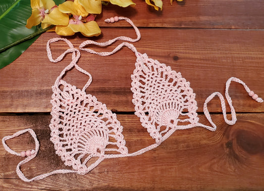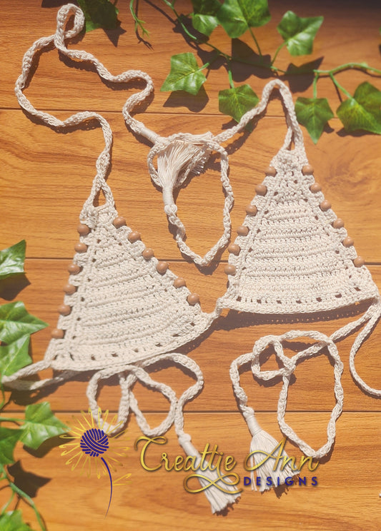 2pc Beaded Cream Crochet Bikini