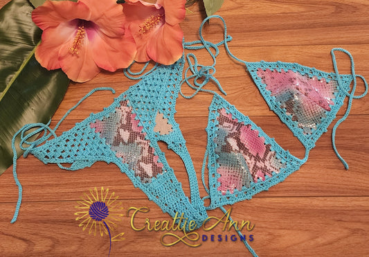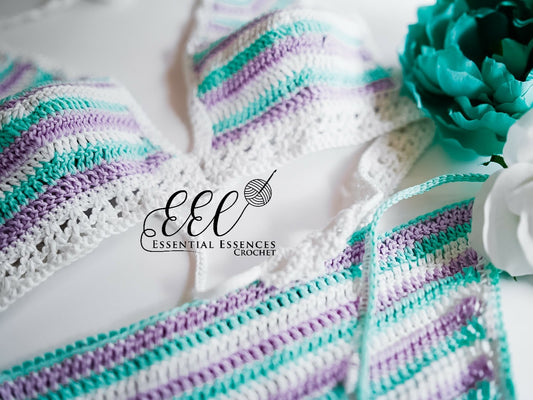 2pc Aqua, Lavender and White Crochet Bikini