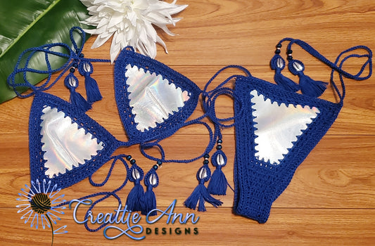 2022 Handmade Crochet 2pc "Blue Iridescent" Leather & Lace Collection