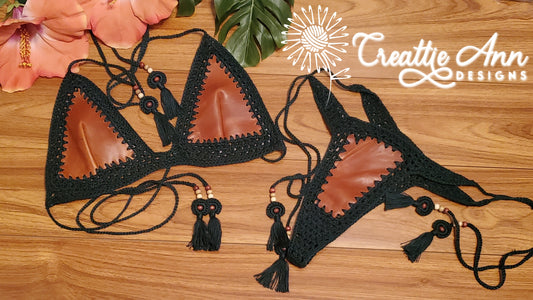 2022 Handmade Crochet 2pc "Earth" Leather & Lace Collection